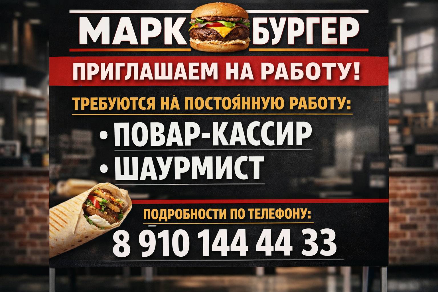 Требуются на постоянную работу повар-кассир, шаурмист.